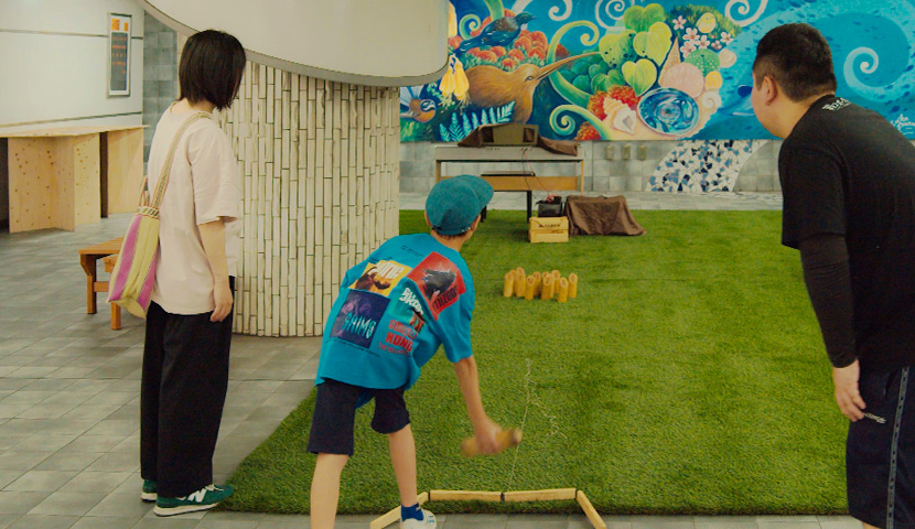 ・人工芝エリアでは、モルックの体験会などを実施。